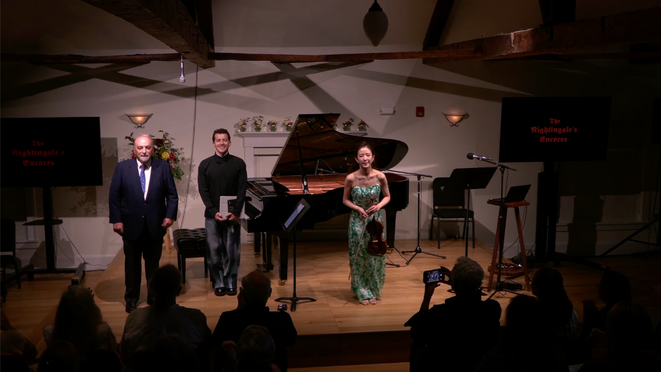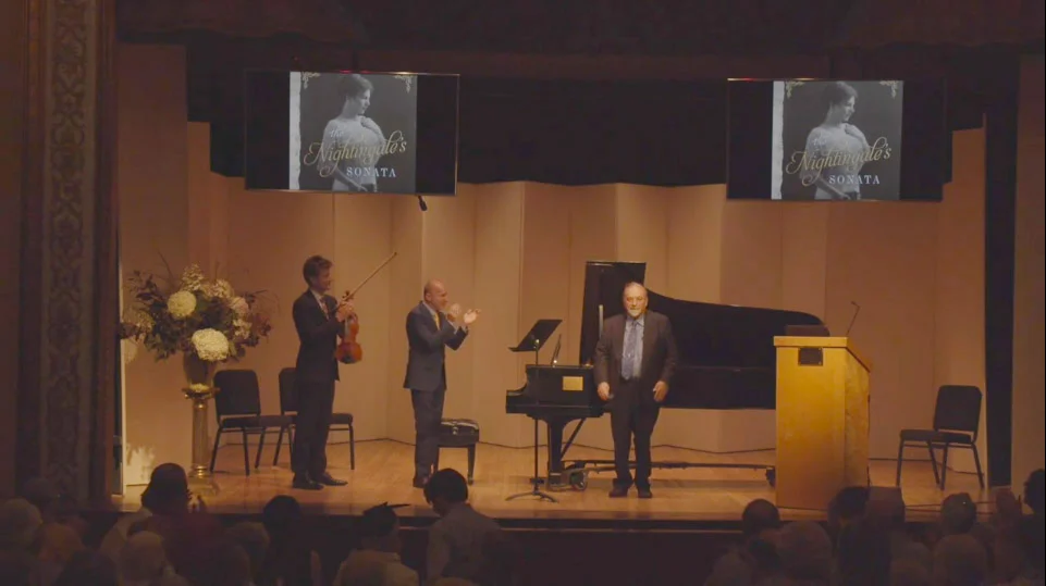 The saga of The Nightingale’s Sonata is told through music, narration, and photographs in this compelling 70-minute video. In this live event from the Rockport (Maine) Opera House on August 9, 2019, author and narrator, Thomas Wolf, is joined by violinist Geoff Nuttall and pianist Pedja Muzijevic. Wolf leads us through the remarkable saga of Lea Luboshutz and her family while the musicians accompany the story with a live performance of César Franck’s sonata for violin and piano, a work that is central to the family’s history. Adaptations of this performance are available to venues throughout the United States.